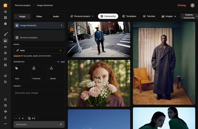 You can set the aspect ratio, number of images, and style preferences, as well as upload reference images. Paid plans also let you train your own custom models and styles.
