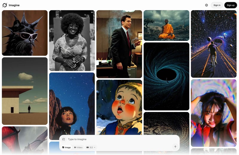 Midjourney is an image and video generator with its own AI model, available only through a paid subscription. You create content from text prompts, select the best variants, and refine your images step by step.
