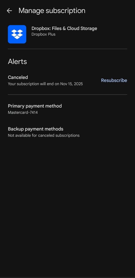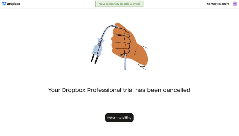 Your subscription or trial is now canceled, and you won’t be billed again. Dropbox will also send a confirmation email — keep it just in case.