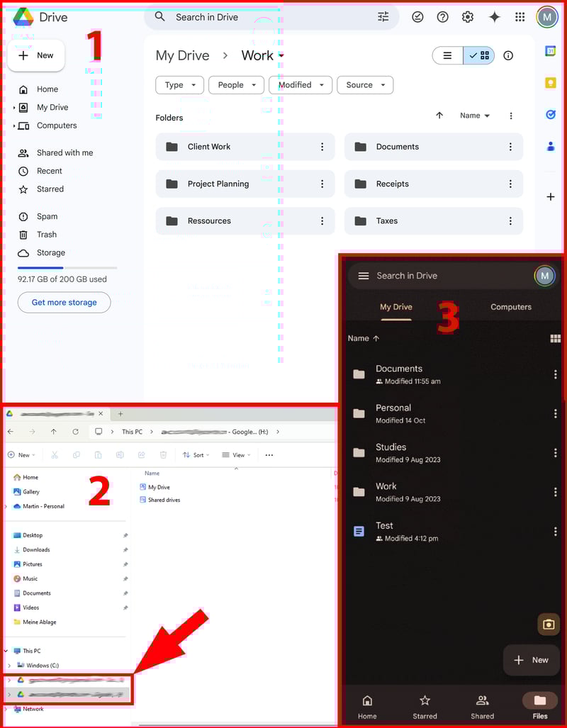 Most cloud storage services — such as Google Drive, shown here — offer all three options: browser, desktop, and mobile app.