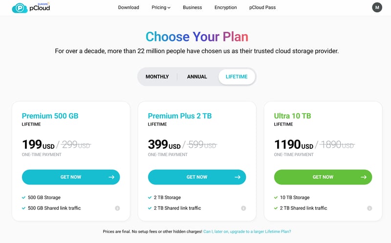 Some providers now offer what’s called lifetime cloud storage. You pay a one-time fee for permanent access to a fixed amount of space. On paper, this can pay off after just a few years — after that, it’s effectively “free” compared to a regular subscription.
