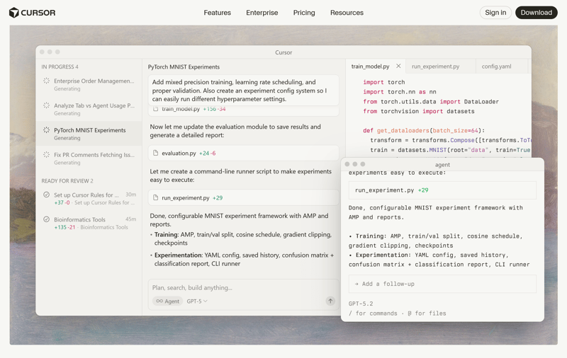 Cursor is an AI-enhanced editor with built-in chat that understands file context and structure.