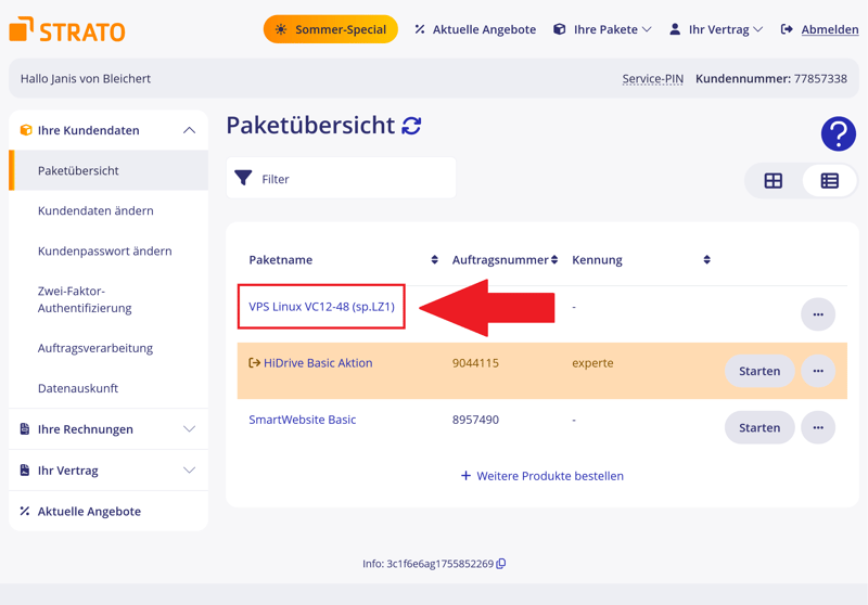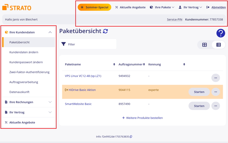 STRATO a supprimé le portail serveur pour les nouvelles commandes. Les clients VPS doivent désormais passer uniquement par l’espace client (« Connexion client »), qui centralise la gestion des factures, des domaines et d’autres services.