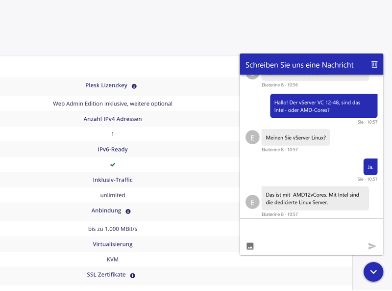 STRATO ne propose pas non plus de chat en direct complet. Le chat disponible sert principalement à conseiller les clients avant l’achat. L’assistant virtuel recueille les demandes, mais c’est ensuite un conseiller humain qui prend le relais. Lors de nos tests, les réponses étaient parfois un peu maladroites, mais globalement utiles.