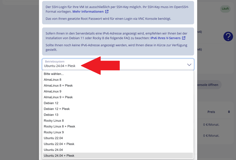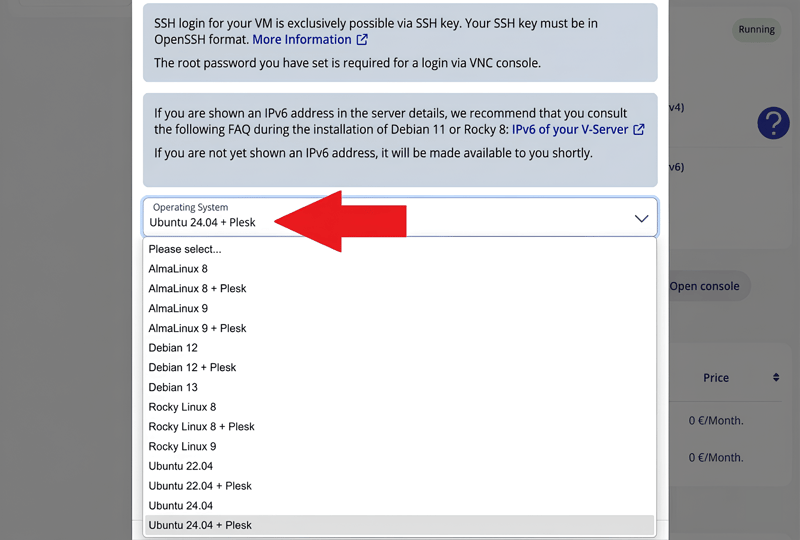 STRATO ne permet pas d’utiliser des images personnalisées et ne propose pas d’applications préconfigurées. Vous pouvez uniquement choisir parmi quatre distributions Linux, chacune disponible en deux versions : AlmaLinux, Debian, Rocky Linux ou Ubuntu.