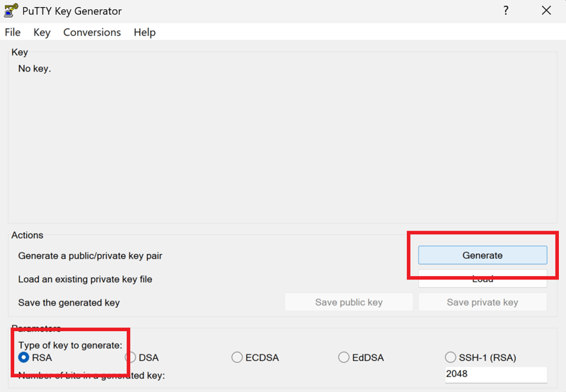 STRATO recommande d’utiliser PuTTYgen, un outil inclus dans le logiciel gratuit PuTTY, pour générer la clé. Cet outil permet de créer une paire de clés RSA et d’enregistrer la clé privée sur votre ordinateur :