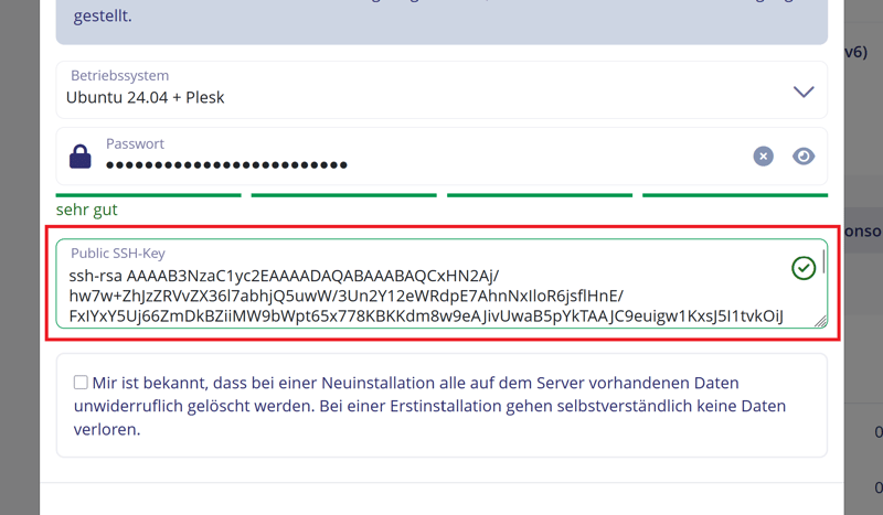 Copiez la clé publique directement depuis PuTTYgen et collez-la dans le champ prévu lors de la configuration du serveur chez STRATO :
