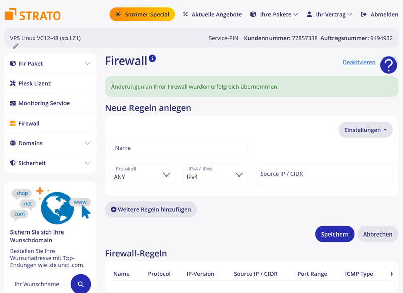 Paramètres du pare-feu chez STRATO.