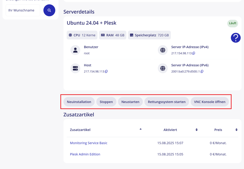 La configuration d’un VPS STRATO peut être plus complexe que chez certains concurrents. Une fois le VPS activé, il s’affiche facilement dans l’aperçu des produits du tableau de bord. Cependant, le processus de configuration implique plusieurs étapes manuelles, ce qui peut ralentir la mise en service, notamment pour les débutants ou les utilisateurs pressés.