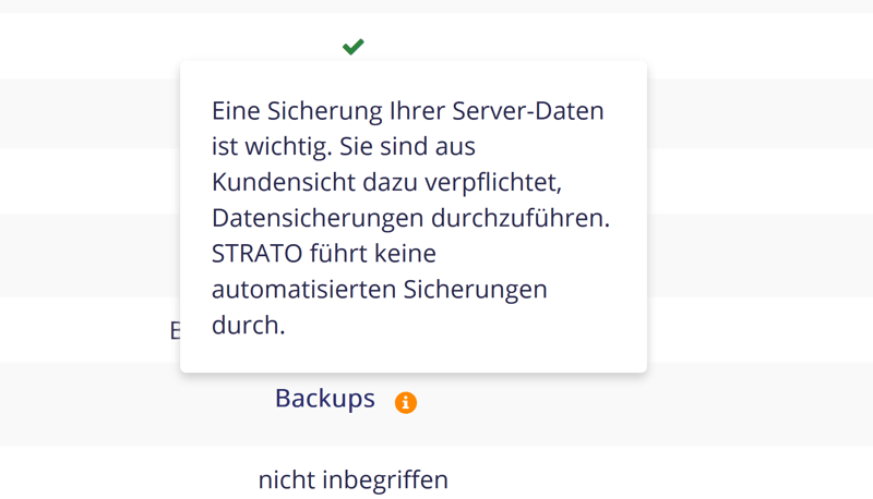 En revanche, ce qui manque dans la gestion du serveur STRATO, ce sont les sauvegardes et les snapshots. STRATO précise que les sauvegardes sont entièrement sous la responsabilité du client. Depuis la migration de l’ancien portail serveur vers l’espace client, les sauvegardes automatiques et les restaurations rapides via snapshot ne sont plus disponibles.