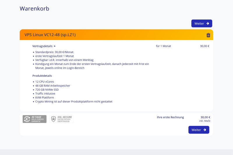 Section VPS Linux dans la boutique STRATO.