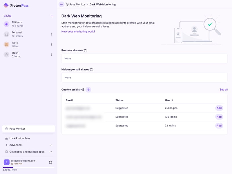 And when a breach is detected, Proton Pass only shows the affected email address, not the specific accounts that may be compromised. Other tools handle this better by listing exactly which logins are at risk. Here, you’ll have to figure that out yourself.