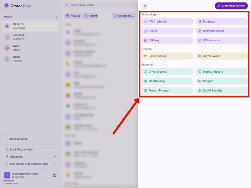 The Pass Plus plan also unlocks additional item types. These include technical entries like API credentials, databases, servers, and Wi-Fi networks, as well as financial data like crypto wallets and personal documents such as driver’s licenses, passports, or medical records. Overall, we didn’t feel like anything important was missing.