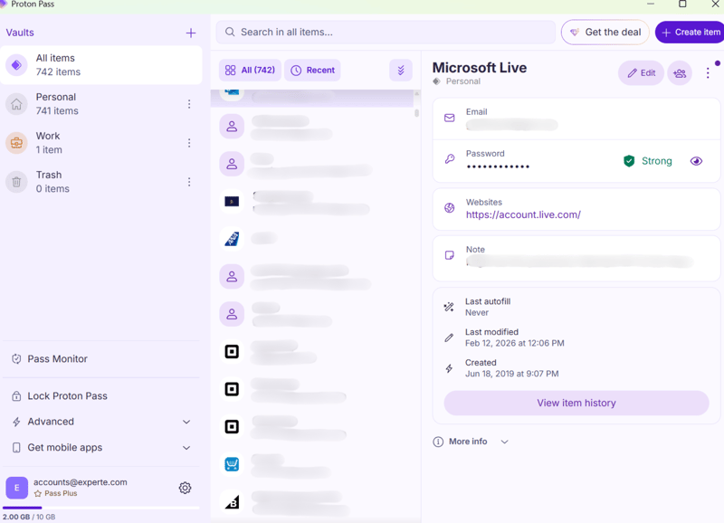 Proton Pass also comes with a desktop app that lets you manage your credentials outside the browser. Its biggest advantage is offline access, so you can still view your saved data even without an internet connection. Other than that, it’s not really necessary, since the browser and web apps do the job.