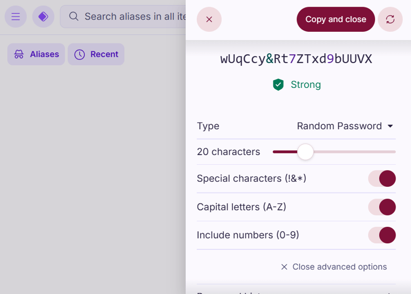 Proton's built-in password generator is pretty good. You can choose between traditional passwords and memorable passphrases, set the length (up to 64 characters or 10 words), and decide which character types to include.
