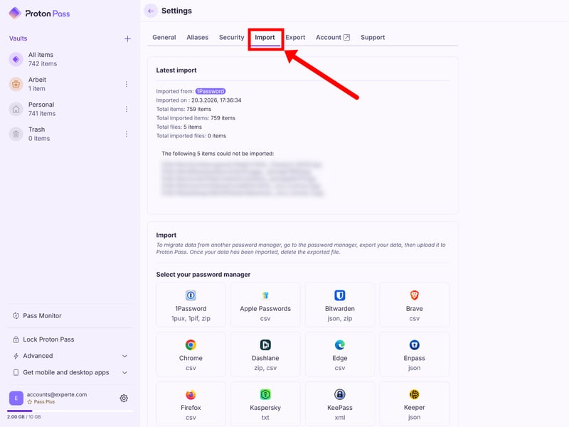 We tested this with an export from 1Password, and the import worked without any issues. Out of 700 entries, most were transferred correctly and were ready to use right away.
