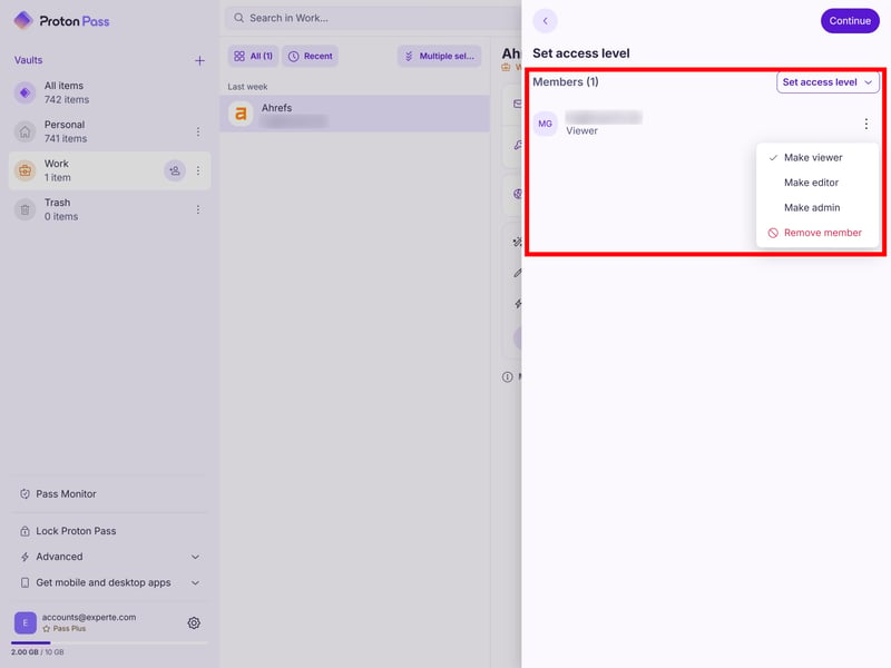 The Pass Plus plan increases storage to 10 GB and lets you create up to 50 vaults, which you can share with up to ten people. It also adds features like emergency access, secure sharing, and built-in 2FA code storage.
