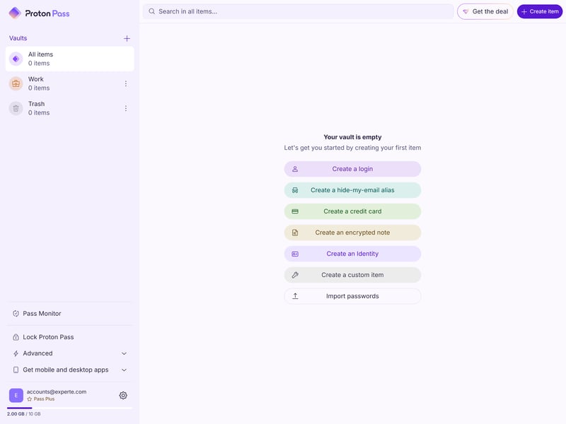 The Proton Pass web dashboard.