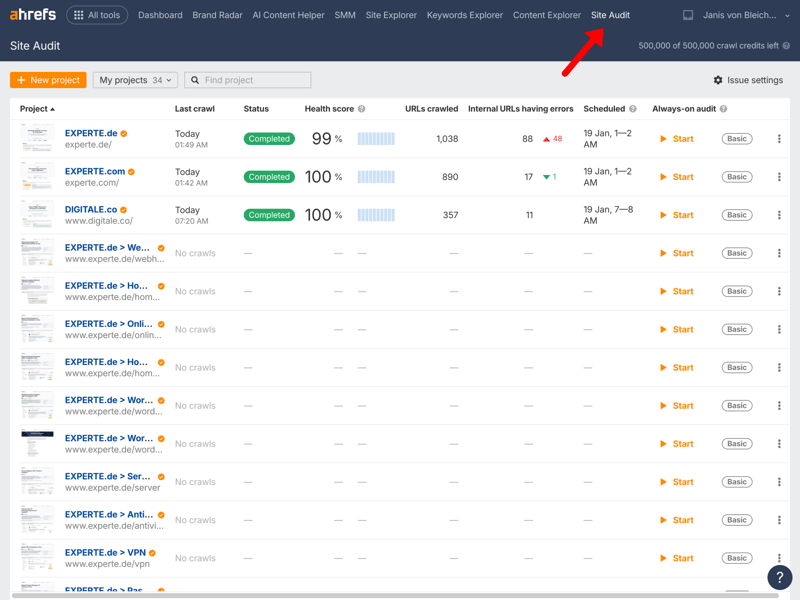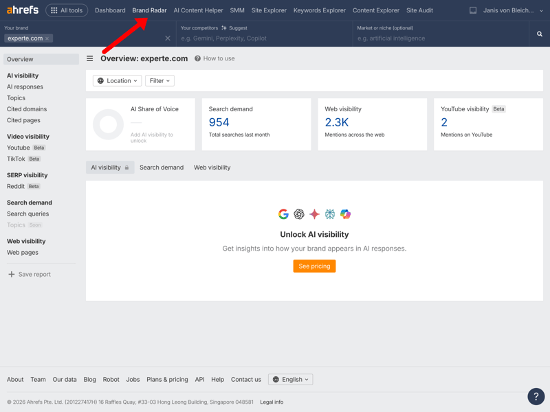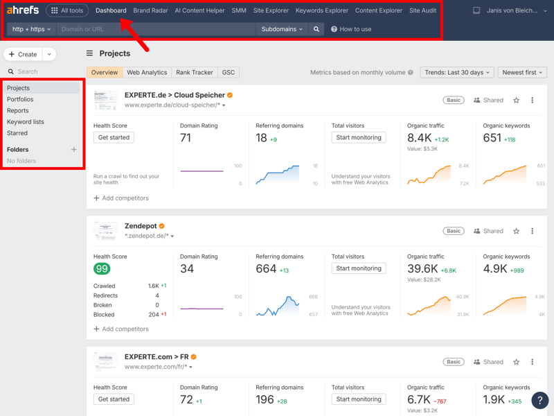 Ahrefs’ extensive feature set comes with a certain level of complexity. Beginners may not always know where to find specific functions right away. In some cases, identical or similarly named sections appear multiple times in the navigation.