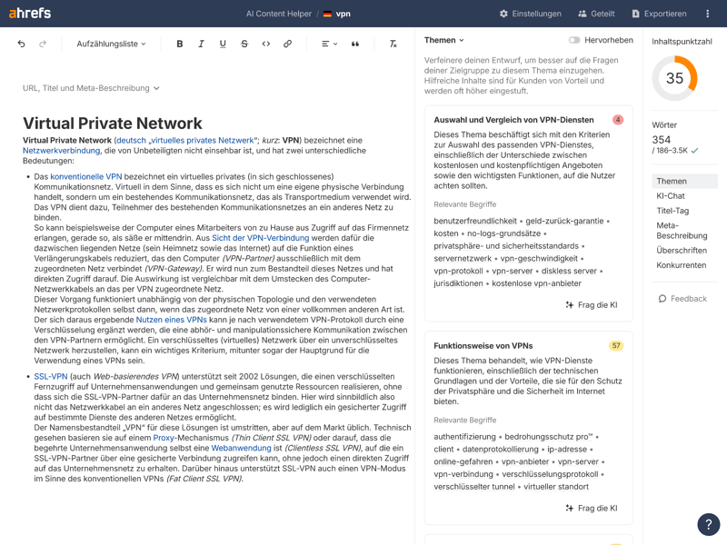 For content work, the AI-powered Content Editor and Content Explorer provide useful input for topic research and content optimization. For professionals and agencies, Ahrefs offers a versatile package that covers both technical and editorial aspects of search engine optimization.
