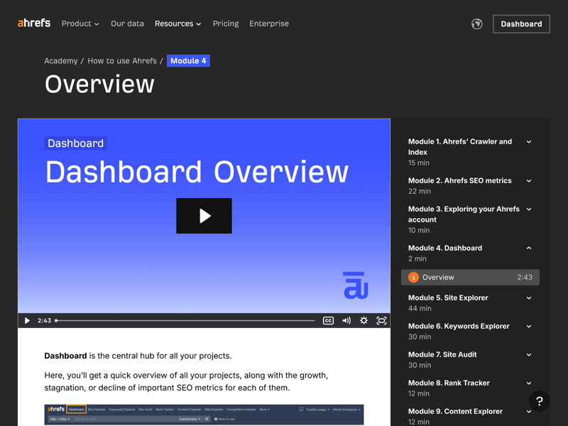The Ahrefs video tutorials are a helpful resource.
