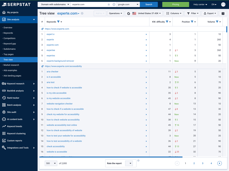 The suite covers everything from keyword research and backlink analysis to technical site audits. This puts Serpstat somewhere between beginner-friendly tools and expensive enterprise software.