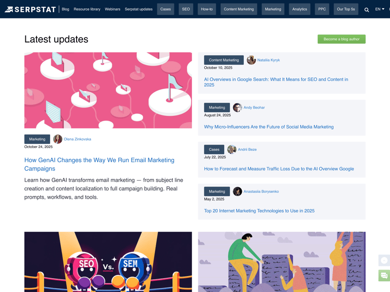 The platform also maintains an active YouTube channel featuring tutorials and webinars. The Serpstat Academy provides free SEO courses, comprehensively covering both fundamental and advanced topics in a structured format. A companion blog further enhances the learning resources with tool updates and general SEO insights.