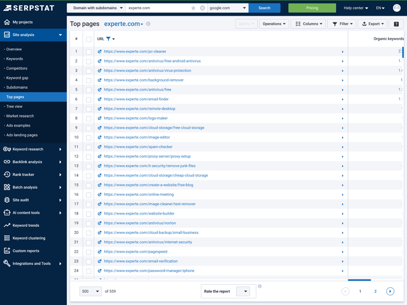 While the AI features still have room to grow, the reporting tools—especially in the higher-tier plans—offer real value for agencies and teams. Overall, Serpstat reliably covers the entire SEO workflow without attempting to compete with specialized professional tools in every niche.