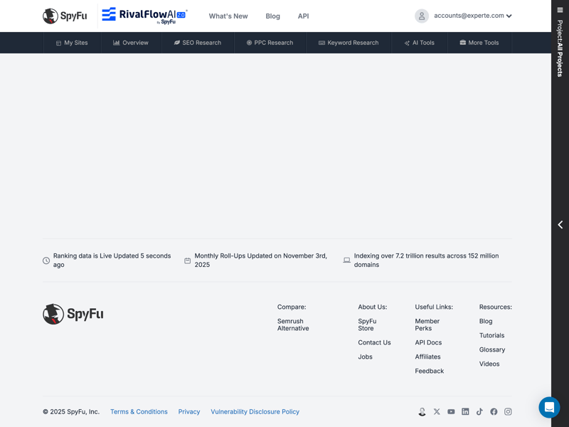 During testing, SpyFu didn’t always run smoothly. Occasionally, reports would initially appear empty. Typically, a quick page refresh resolved the issue. Nevertheless, these glitches can disrupt your workflow.