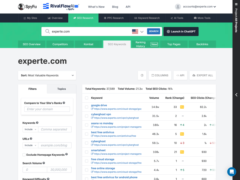 SpyFu prioritizes different aspects than traditional SEO suites. Technical SEO tasks such as site audits are entirely absent, and rank tracking feels awkward. However, marketing and sales teams will find much to appreciate here.