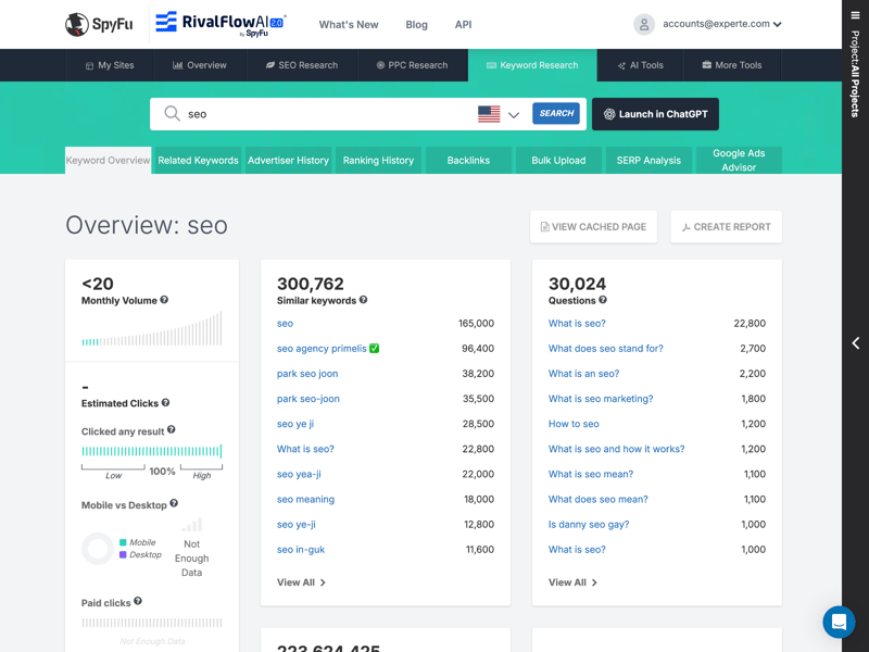 Unlike broader SEO suites, SpyFu focuses specifically on the overlap between search engine optimization (SEO) and paid advertising (PPC). The goal is simple: show what’s working for your competitors and leverage those insights to fuel your own growth.