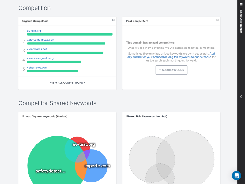 This view is particularly useful for analyzing SEO competition surrounding specific keywords. Users will often find that their SEO competitors are not necessarily the same as their actual business competitors.