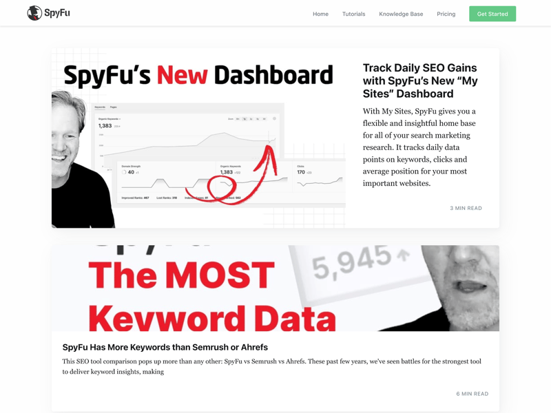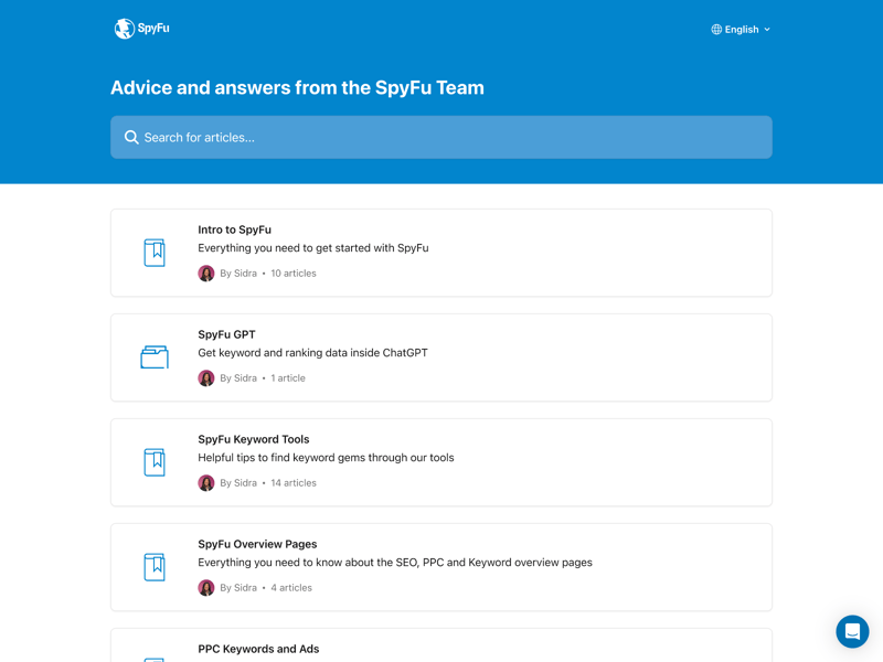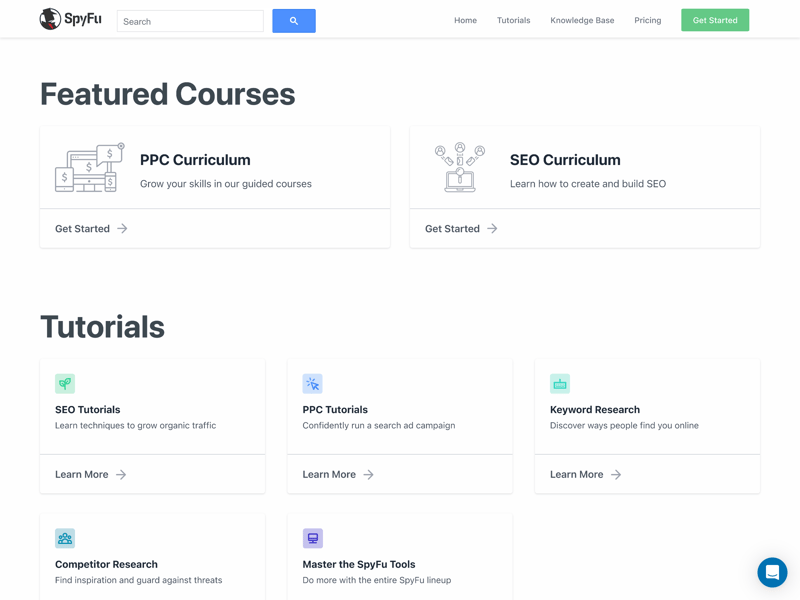 SpyFu provides a solid collection of help resources, including a knowledge base, a blog, and various tutorials and feature guides.