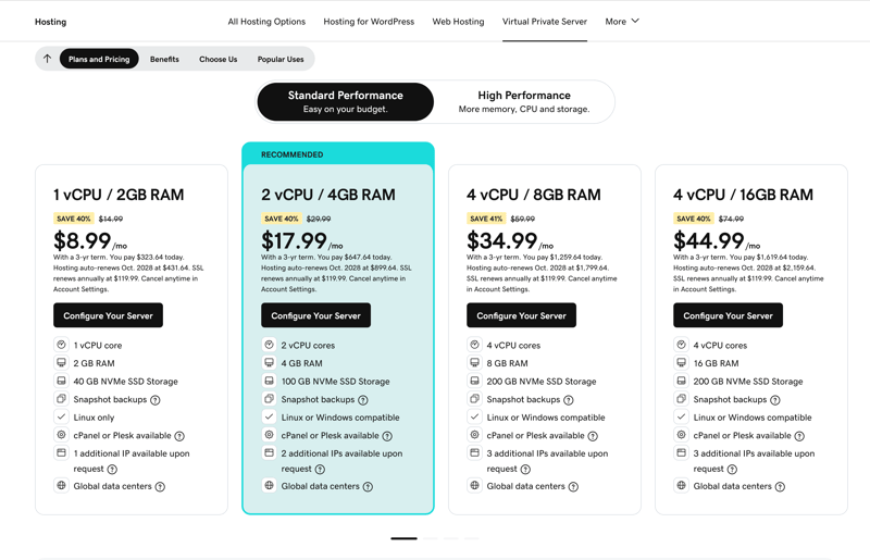 GoDaddy’s VPS plans.