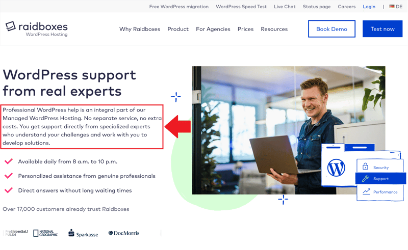Specialized support from WordPress experts helps with troubleshooting, questions, and performance optimization.