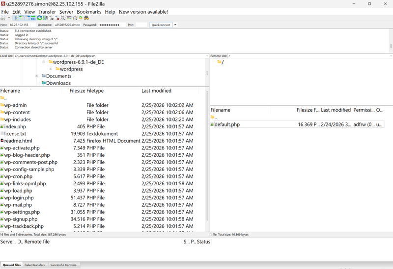 The upload takes a few minutes. Once it’s done, the WordPress files are on your web space, and you can start the installation in your browser.