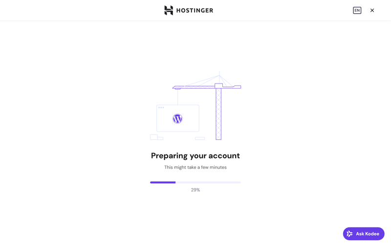 Step 8: Hostinger automatically installs WordPress and sets up your website in the background. It transfers the files, creates the database, and links everything to your domain.