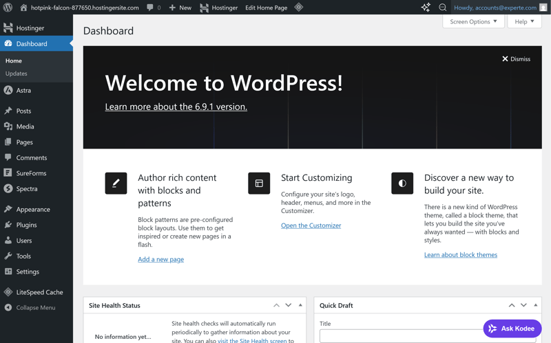 The installation usually takes just a few minutes. Once it’s done, Hostinger automatically redirects you to your new WordPress dashboard: