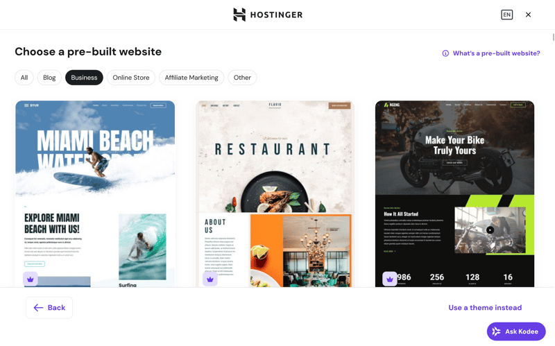 Hostinger offers a wide range of templates.