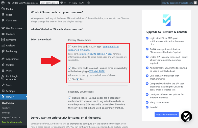 These plugins integrate directly with WordPress user management and support multiple 2FA methods. They also allow you to enforce 2FA based on user roles.