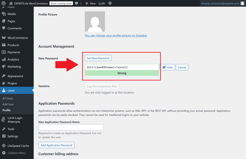 Pay attention to WordPress’ built-in strength indicator when changing your password: