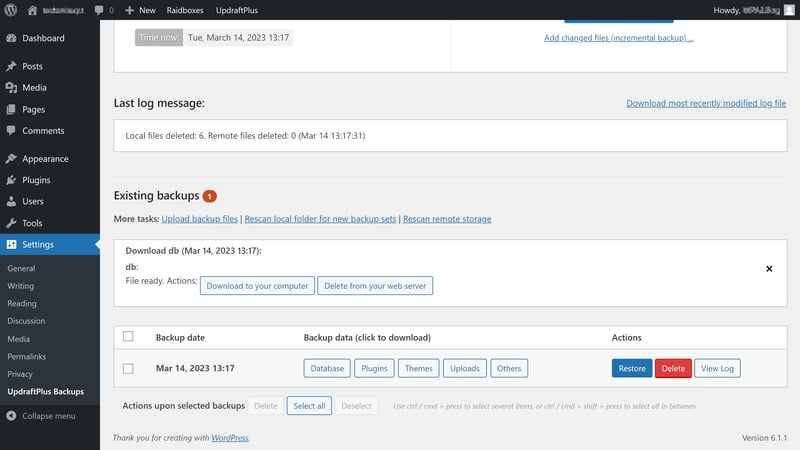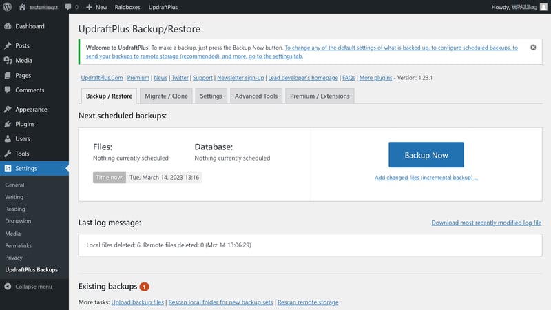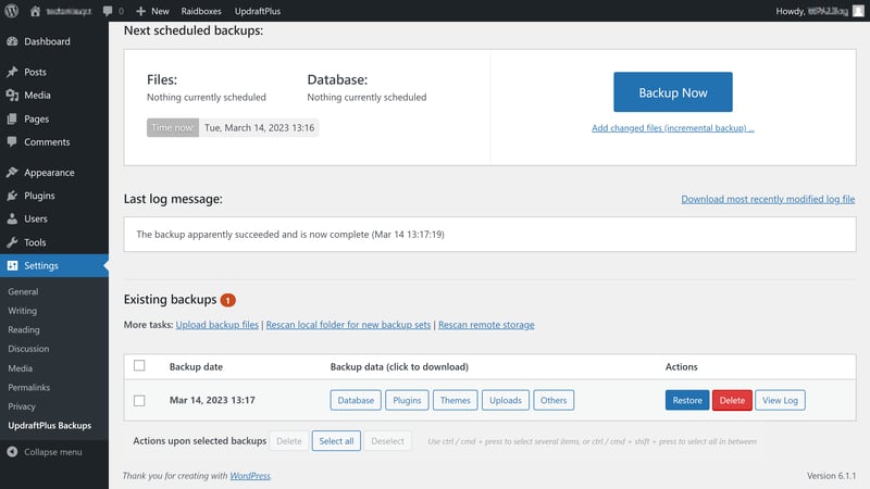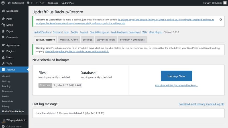 One of the most widely used WordPress backup plugins is UpdraftPlus. Even the free version offers a solid set of features.