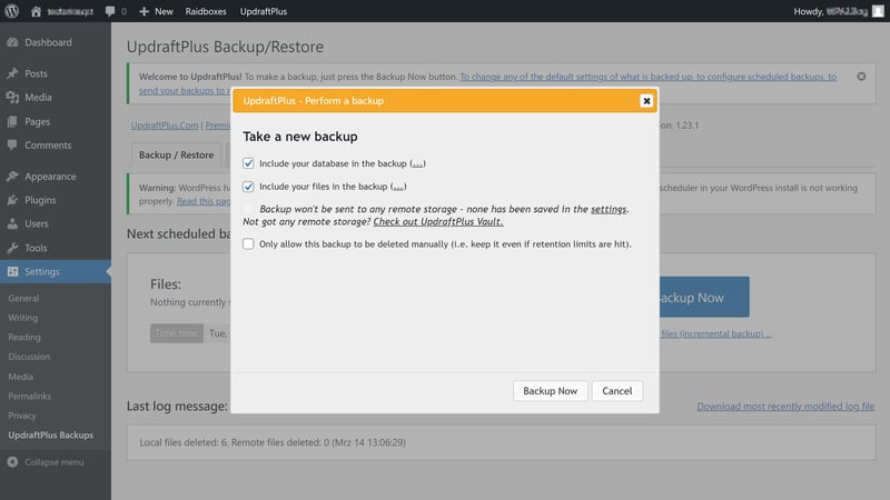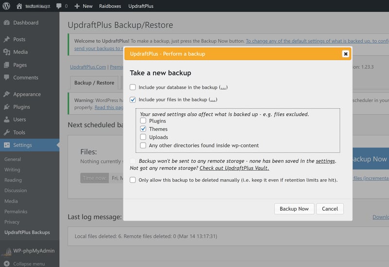 Depending on the size of your website, this reduces both the required storage space and the time needed to complete the backup.