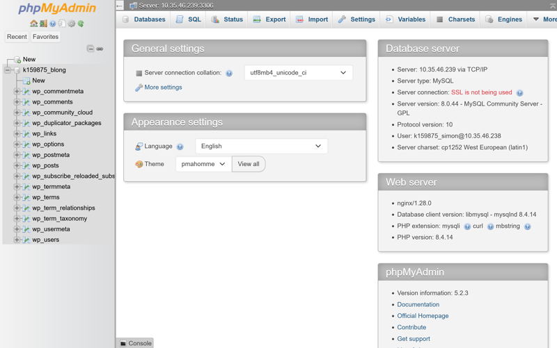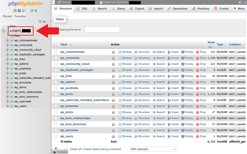 Backing up your files alone isn’t enough. To create a complete backup, you also need to export the database. It stores your site structure, global settings, links, as well as plugin and theme data. You can use the phpMyAdmin tool provided by your hosting provider to export the database.