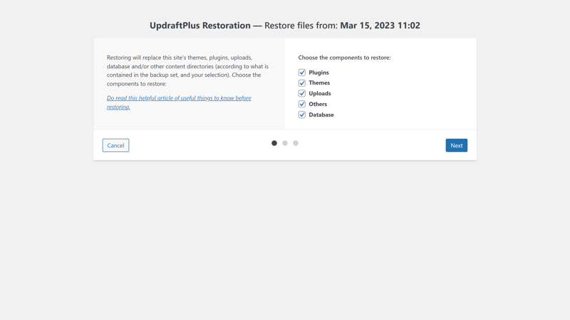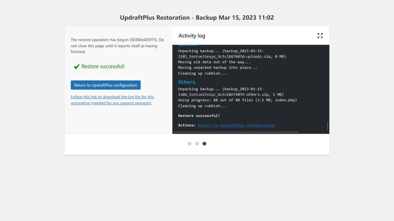 Many plugins include a restore option that lets you recover backups directly from the WordPress dashboard.