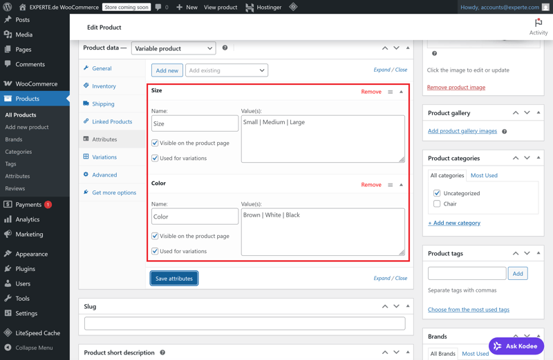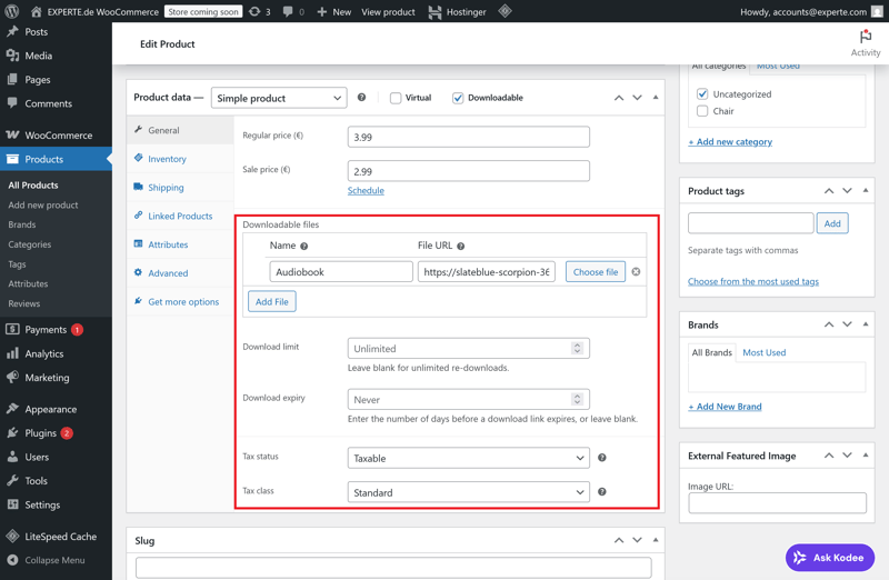 The WooCommerce plugin turns your WordPress website into a fully functional online store. You manage your products, payment methods, and shipping options directly from the WordPress backend.