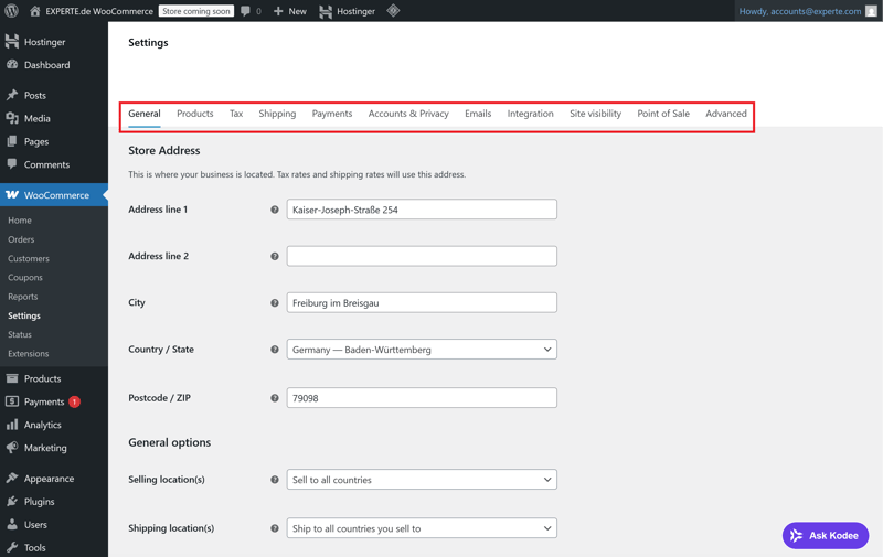 These settings affect nearly every part of your store. They influence pricing, checkout, invoices, and legal information. Make sure you don’t leave any important fields blank.