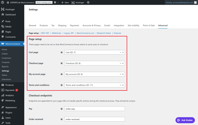 WooCommerce automatically creates a few key pages: Shop, Cart, Checkout, and My Account. Depending on where your business is located, you may also need certain legally required pages to stay compliant. In Germany, for example, these include: