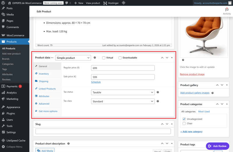 Next, it’s time to build your product catalog. WooCommerce makes it easy to create and manage products with individual prices, descriptions, images, and variants. It supports both physical goods and digital products.