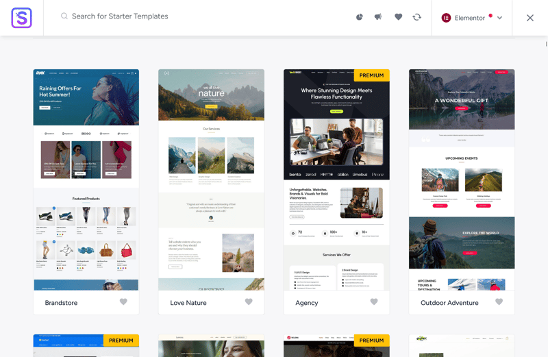 Many starter templates are available for free.